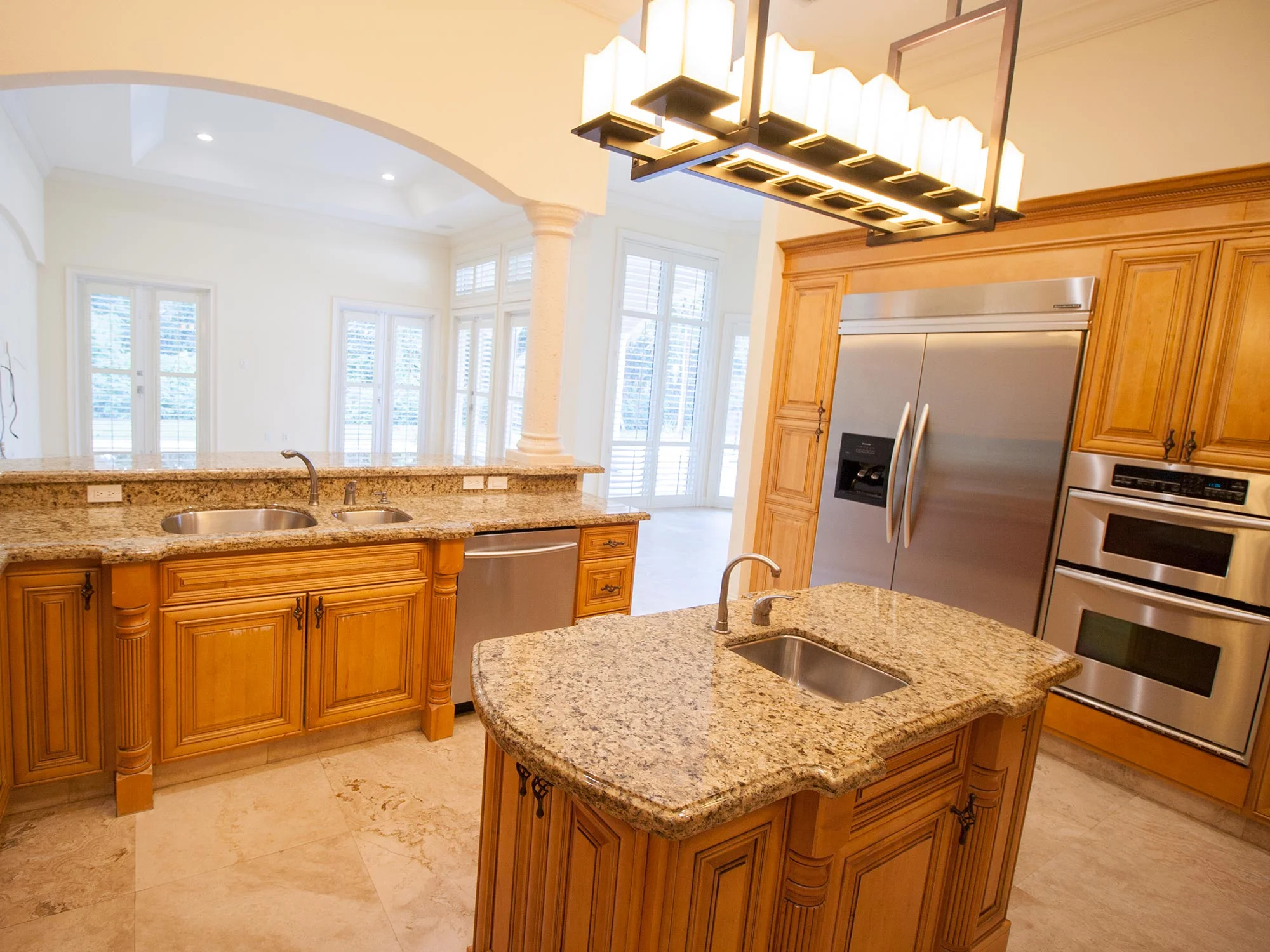 Full-service wet bar. Kitchen opens to huge family room. Light & bright breakfast area and formal dining. Split plan good for in-laws. 3 bedrooms w/en-suite baths. Large master bedroom with amply-sized dual walk-in closets.