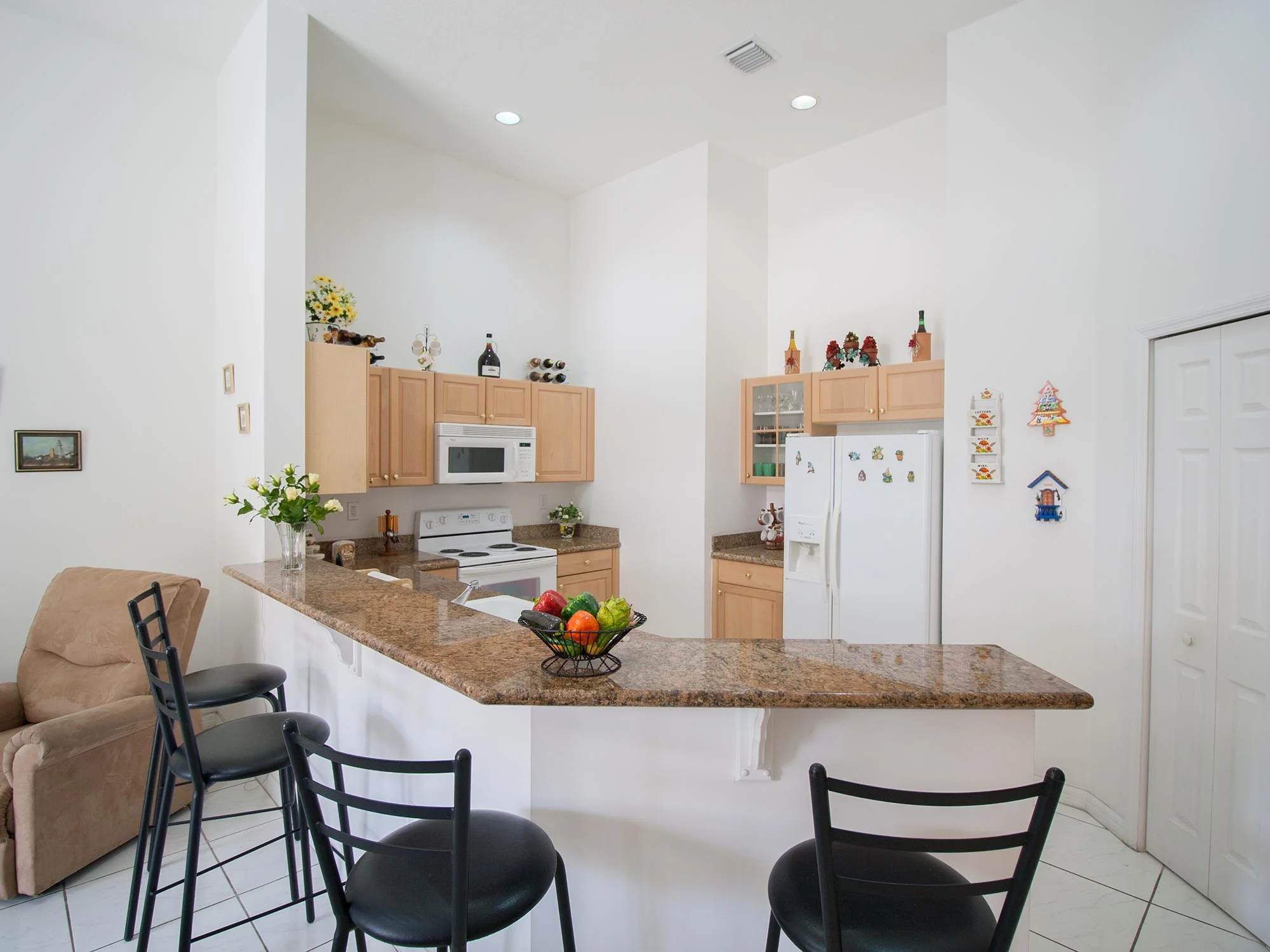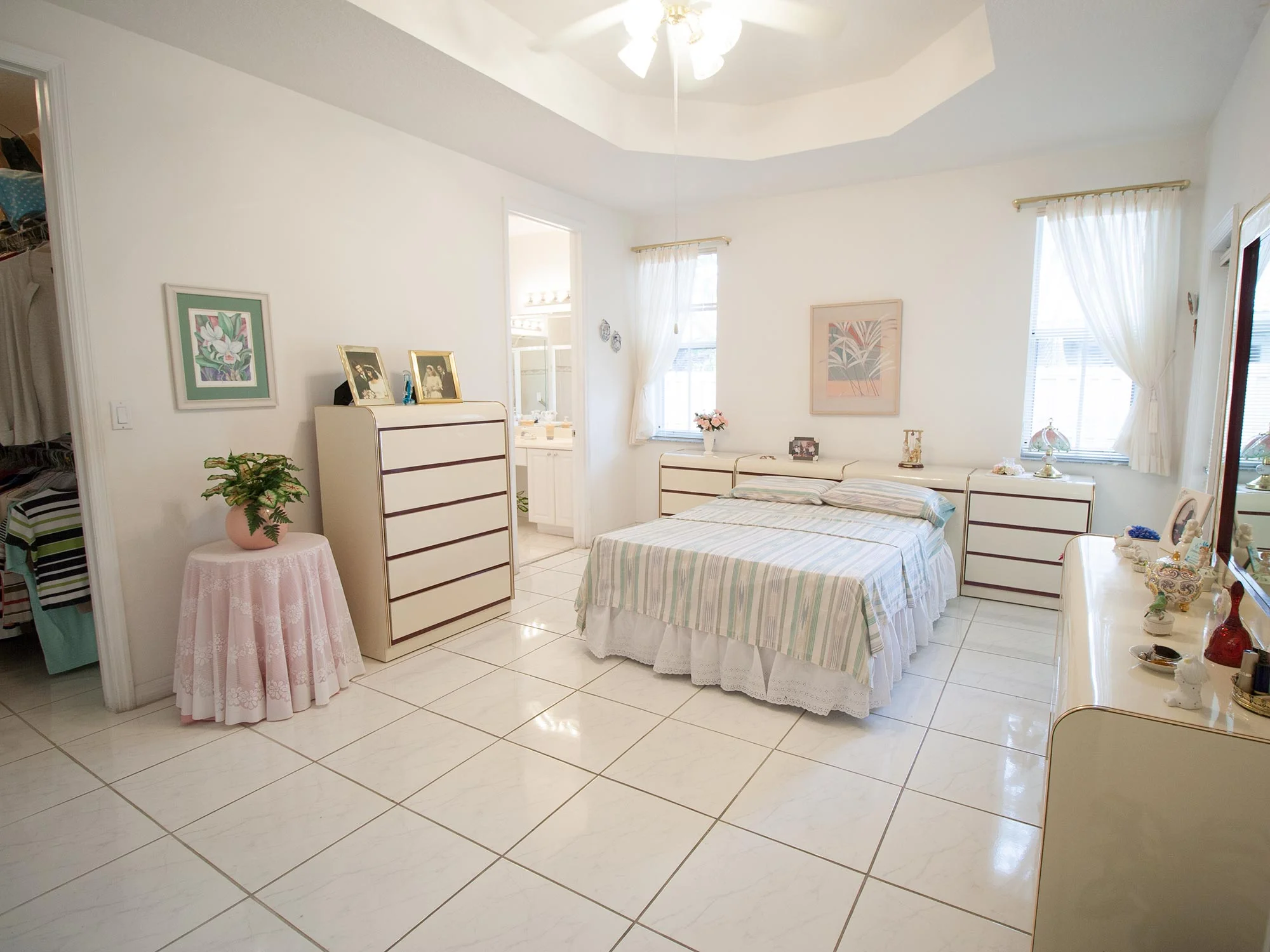 Three more bedrooms are part of this split plan home. Laundry area inside near garage entry. New AC with 10yr. warranty. White tile flooring throughout. Pavers driveway. Serene backyard with room for small pool.