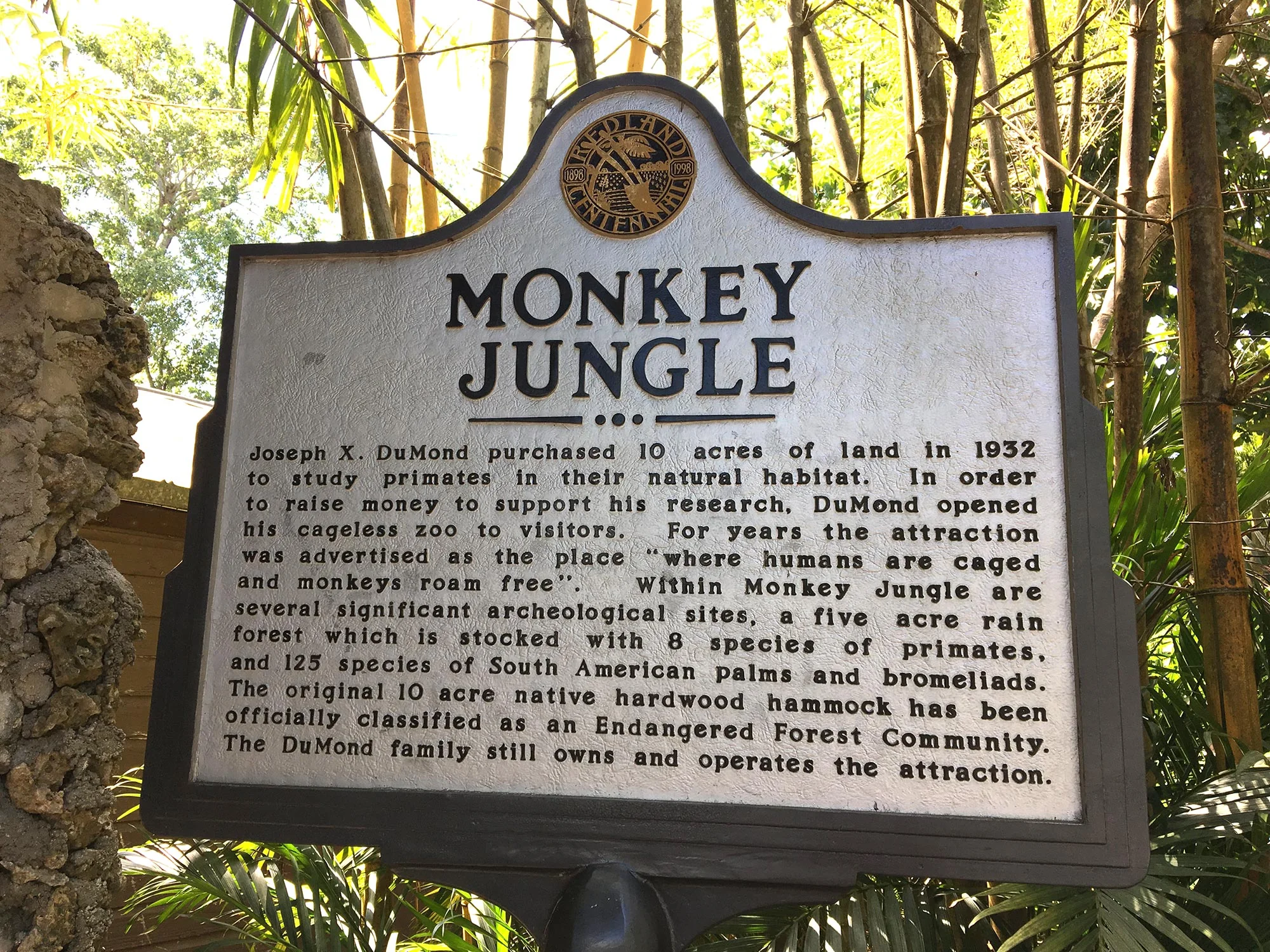 Monkey Jungle started with the passion of Joseph DuMond, a Connecticut native, to study primates in their native environment. In 1935, DuMond purchased 10-acres of South Florida hardwood hammock because its climate and ecology were so similar to the monkeys’ home in Southeast Asia.